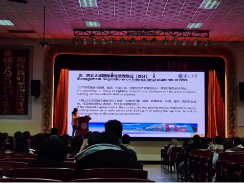 2023级新生入学教育环节,西安市公安局出入境管理局曹宇警官围绕涉外法律法规条文、签证办理、违纪违法案例等方面进行全面系统的诠释和强调,提醒务必遵纪守法,及时关注自己的签证有效期。王曼老师向大家解读了涉及国际员工管理的相关规定,薛珊老师从学业指导角度讲解了学分修习方法和规定、专业课程以及汉语等级的要求等。