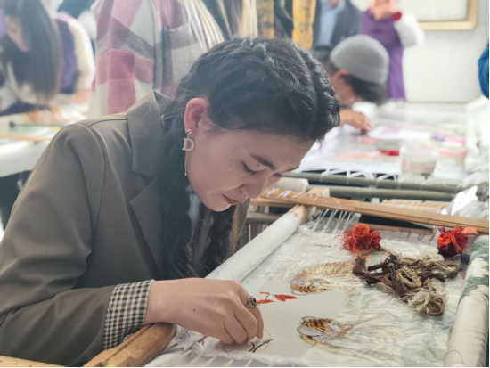 咸阳市非物质文化遗产保护传承人计清女士讲解刺绣作品