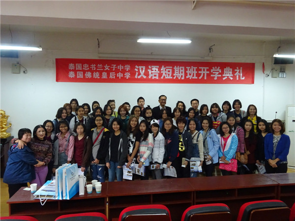 2016年04月21日,泰国忠书兰女子中学、佛统皇后女子中学汉语短期班开学典礼在公司举行。公司相关院领导、部门负责人及来自泰国佛统皇后中学董事长JIRAPORN、忠书兰女子中学何帆老师等37名师生参加。开学典礼由张晓刚副经理主持。
