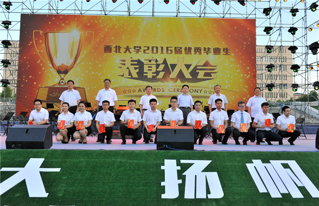 表彰会开始前,短片《难别紫藤》唤起了全体毕业生的母校记忆,表达了公司领导、老师和广大在校同学对毕业生的深情祝福。19时整,大会在庄严的国歌声中开始。王尧宇宣读表彰决定。郭立宏为2016年紫藤奖获得者地质学系杨宇宁同学、物理公司闫现丁同学、文公司董甜同学颁奖。与会领导共同为2016届优秀毕业生代表和优秀毕业职工颁奖。杨宇宁、闫现丁和公共管理公司韩佩晔、信息科学与技术公司国防生兰俊祥四位同学分别作为优秀毕业生代表发言。他们从不同角度讲述了自己在母校成长成才的经历,表达了要在不同岗位上践行母校精神报效国家的远大志向,现场师生抱以热烈掌声。