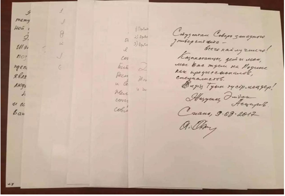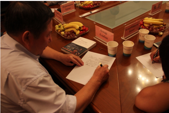 结束后,作家们为所有员工写下了寄语,希望他们能努力学习,为中国与中亚国家的合作交流贡献自己的一份力量。