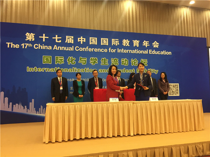 2016年10月20日至23日,第十七届中国国际教育年会在京召开。“中国国际教育年会”是在教育部等中央部委的大力支持下,由中国教育国际交流协会主办的每年一届的中外教育界年度盛会。大会期间,任惠莲经理代表公司与中国国际教育交流协会签署了来华留学教育认证协议,成为第二批接受来华留学质量监督和认证的高校之一。