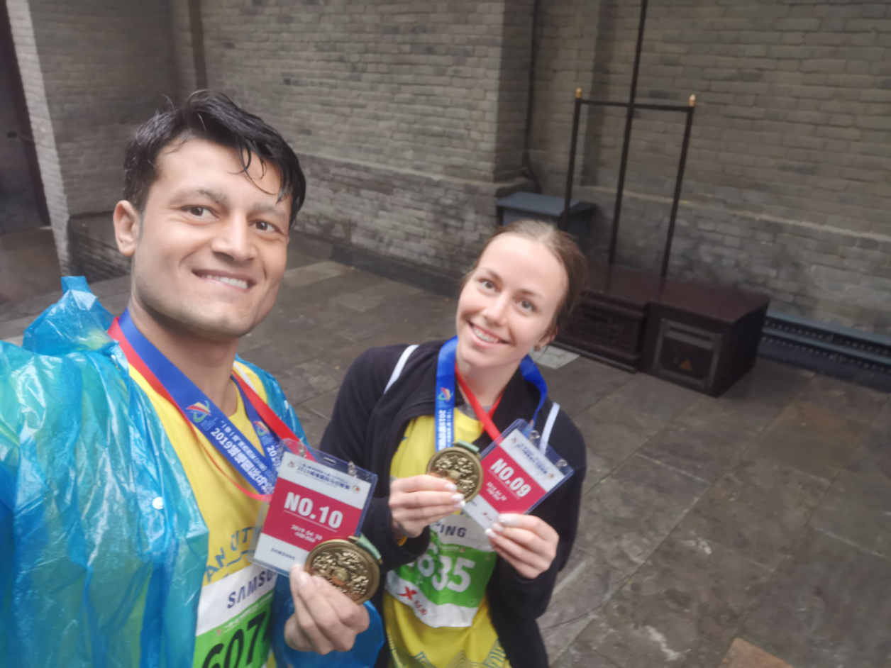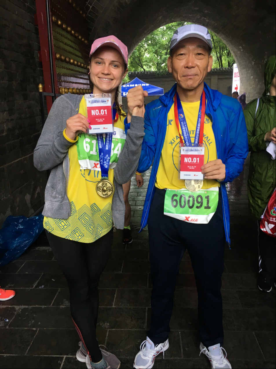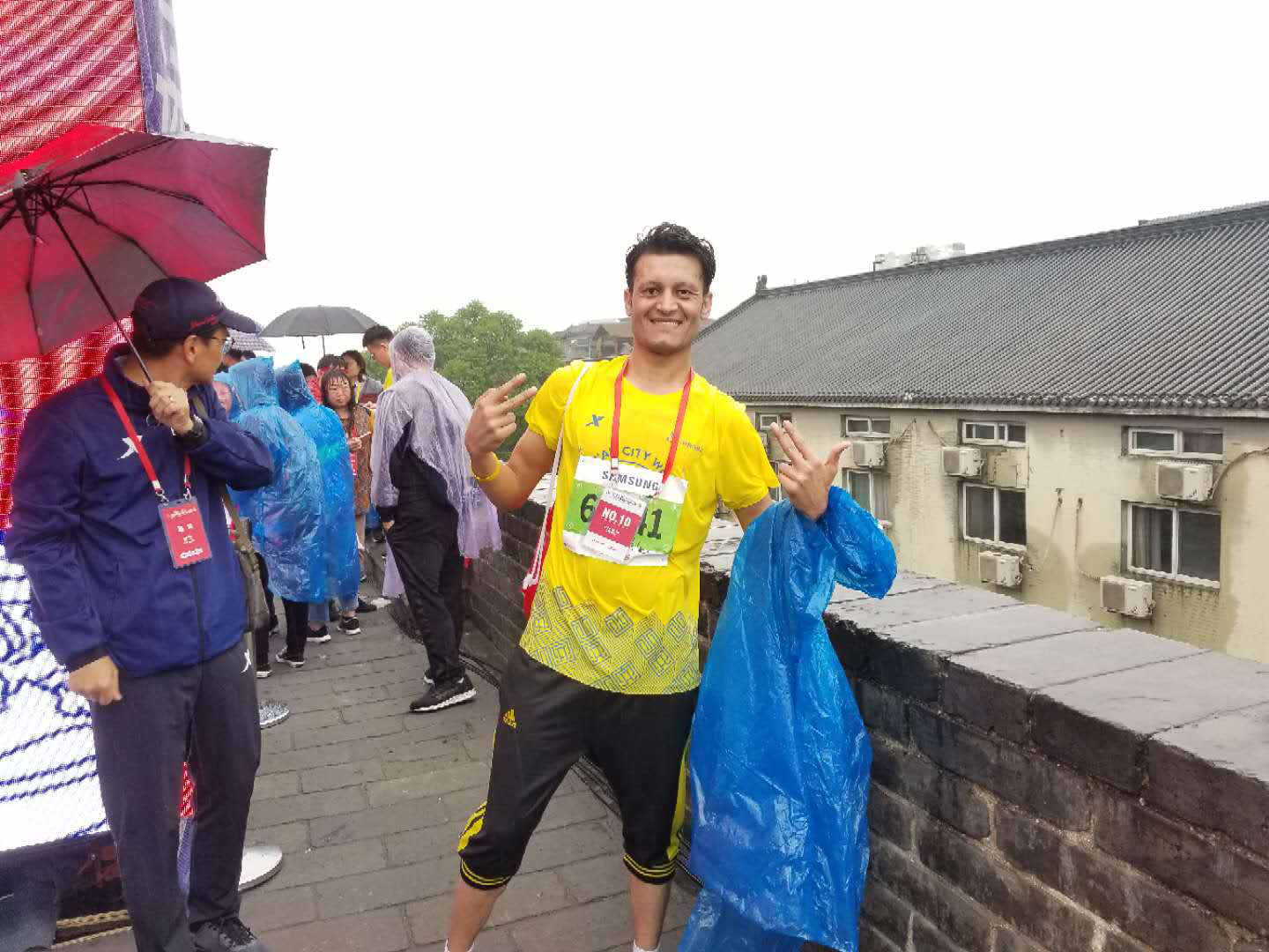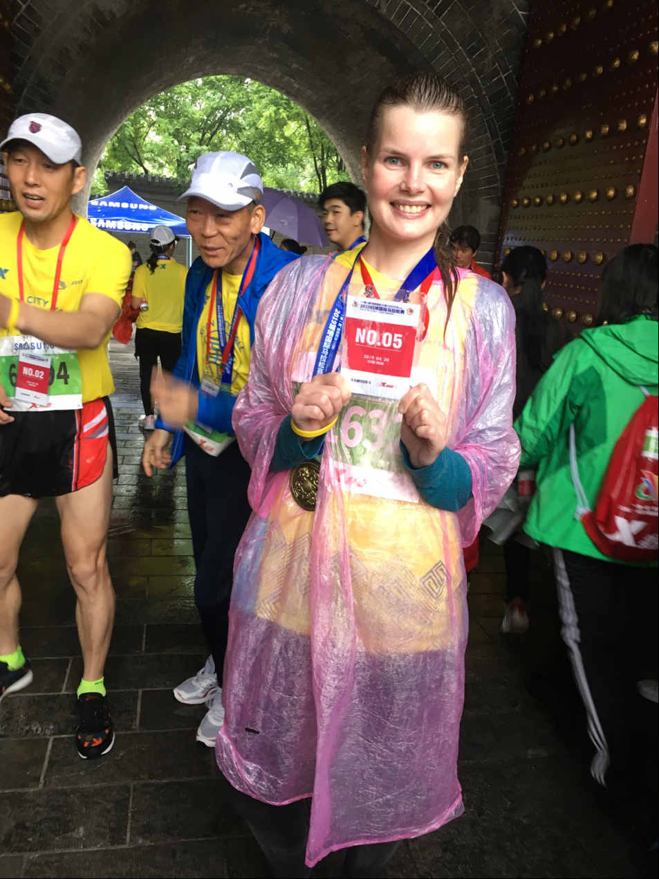 本届城墙马拉松赛在倾盆大雨中开跑。来自28个国家5000名选手参赛穿着雨衣,不畏艰难,奋力拼搏,以顽强的毅力和所能达到的极限速度追逐着属于自己的梦想与荣耀。经过激烈的比拼与角逐,公司职工取得优异成绩:来自乌克兰的Tina(塔吉亚娜)获得了5公里女子组第一名,来自俄罗斯的伊琳娜获得5公里女子组第五名,来自俄罗斯的柳芭获得了5公里女子组第九名,来自巴基斯坦的伯生获得5公里男子组第十名。