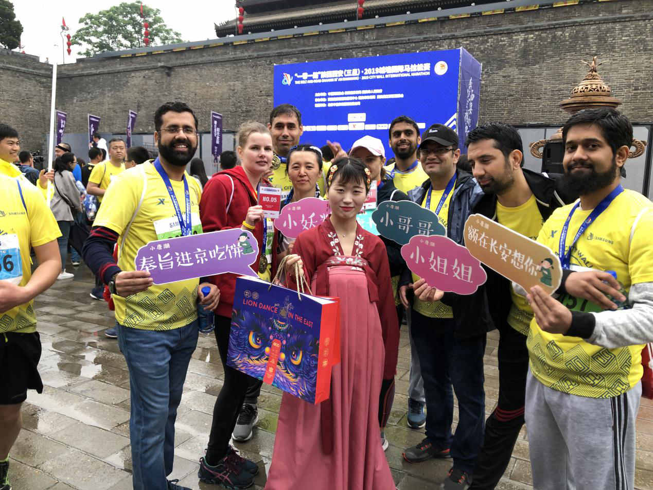 2019年4月20日上午,“一带一路陕西西安(三星)2019城墙国际马拉松赛”在西安城墙冒雨举行,公司14个国家的55名职工参加了比赛,其中50人参加了5公里赛,5人参加13.7公里赛。