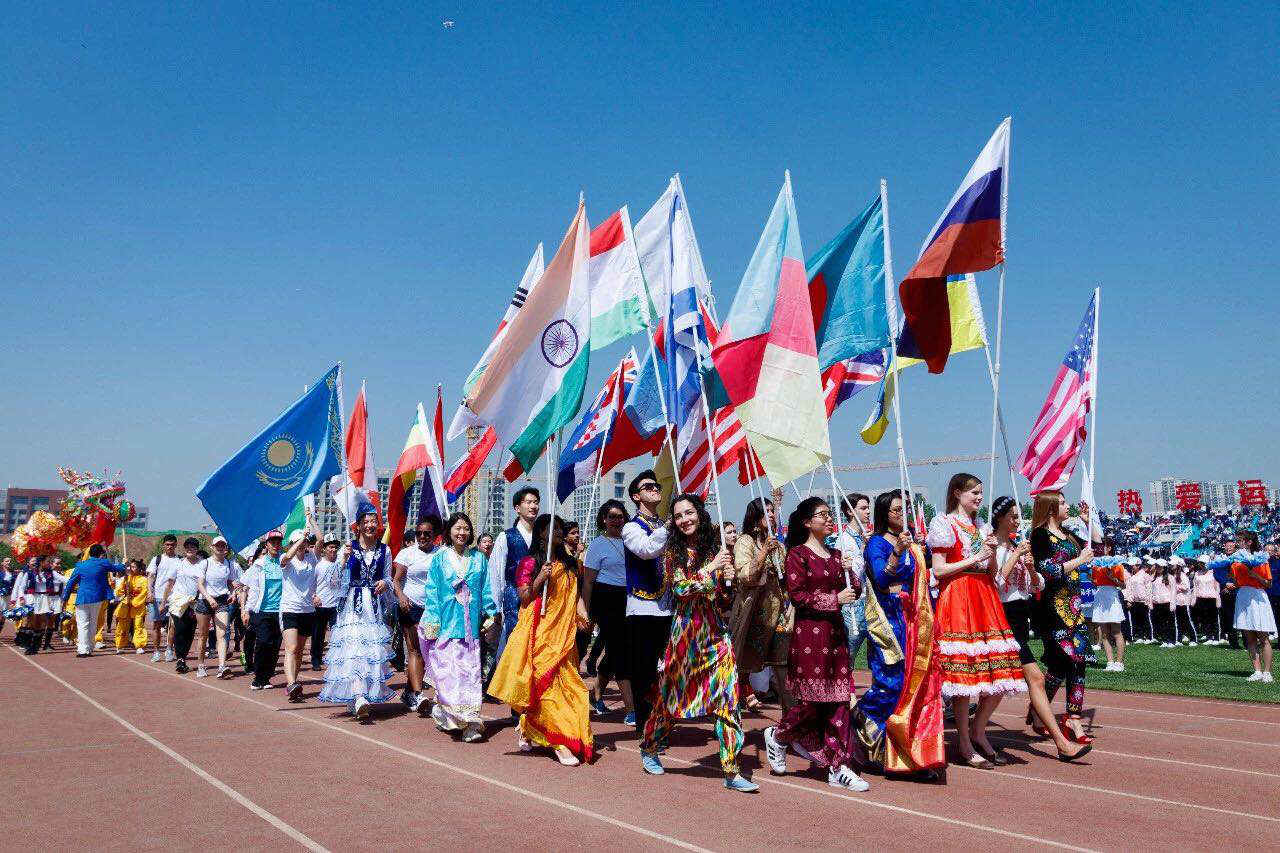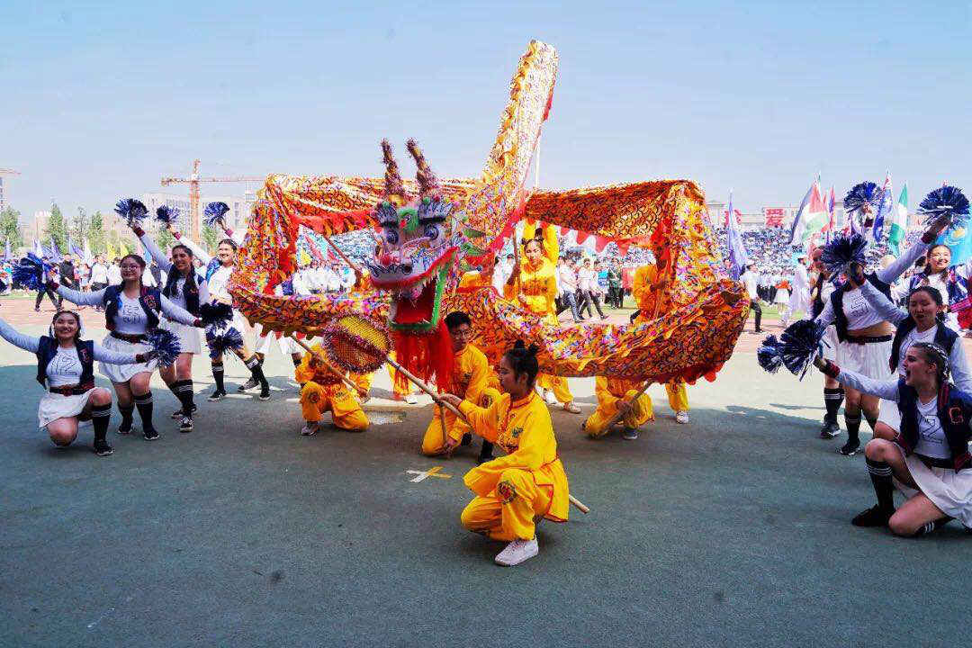 开幕式上,职工身着各国民族服装、手执不同国家的国旗,与精神抖擞的教师方阵共同组成了运动场上一道多元文化,也最为靓丽的风景线。30秒展示与啦啦操表演环节,职工们手中红黄相间的中国龙飞腾跳跃、惟妙惟肖,啦啦操队飞动跳跃、激情四射,将中国传统文化与现代动感舞蹈完美结合,给现场带来了一场美妙的视觉盛宴。