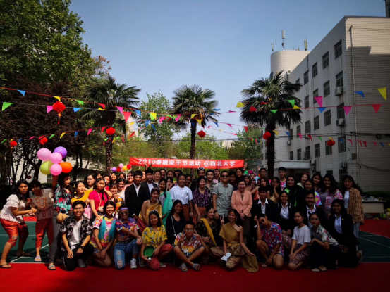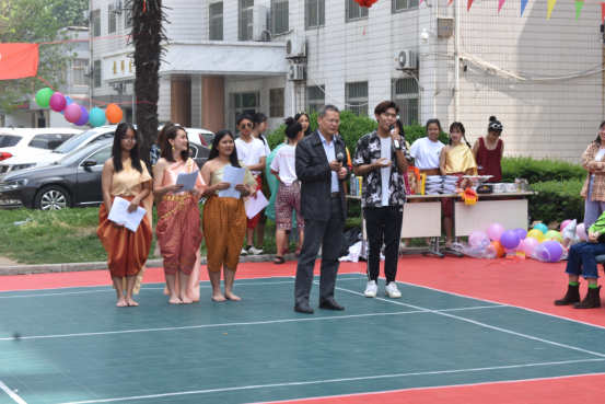 ORACHA TANAKORN、张银仓分别为现场泰国学子送上了节日祝福和期望。泰国员工李明金向大家介绍了宋干节的来源及节日习俗。泰国罗勇中学、姹棱宽女子中学的员工们还带来了精彩的泰拳、传统舞蹈表演。随后国际员工选美比赛将活动的气氛推向高潮,来自韩国的姜惠源、李河林及来自塔吉克斯坦的阿依古丽同学分别获得本次比赛的冠亚季军。