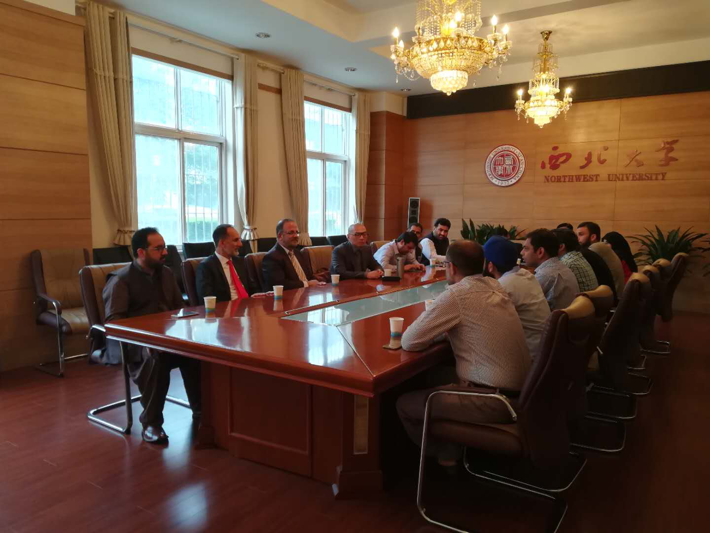 2018年5月10日下午,巴基斯坦白沙瓦大学中国中心主任安瓦尔·扎西德教授(Anwar Zahid)、巴基斯坦研究中心主任法赫·乌尔·伊斯兰教授(Fakhr-ul-Islam)一行到公司进行访问。张银仓副经理,足球赌注网站中国西部发展研究中心“一带一路”研究院干事长/项目统筹李韬,15名巴基斯坦职工参加了会议。双方就员工交换等项目的合作事宜进行进行了深入讨论。