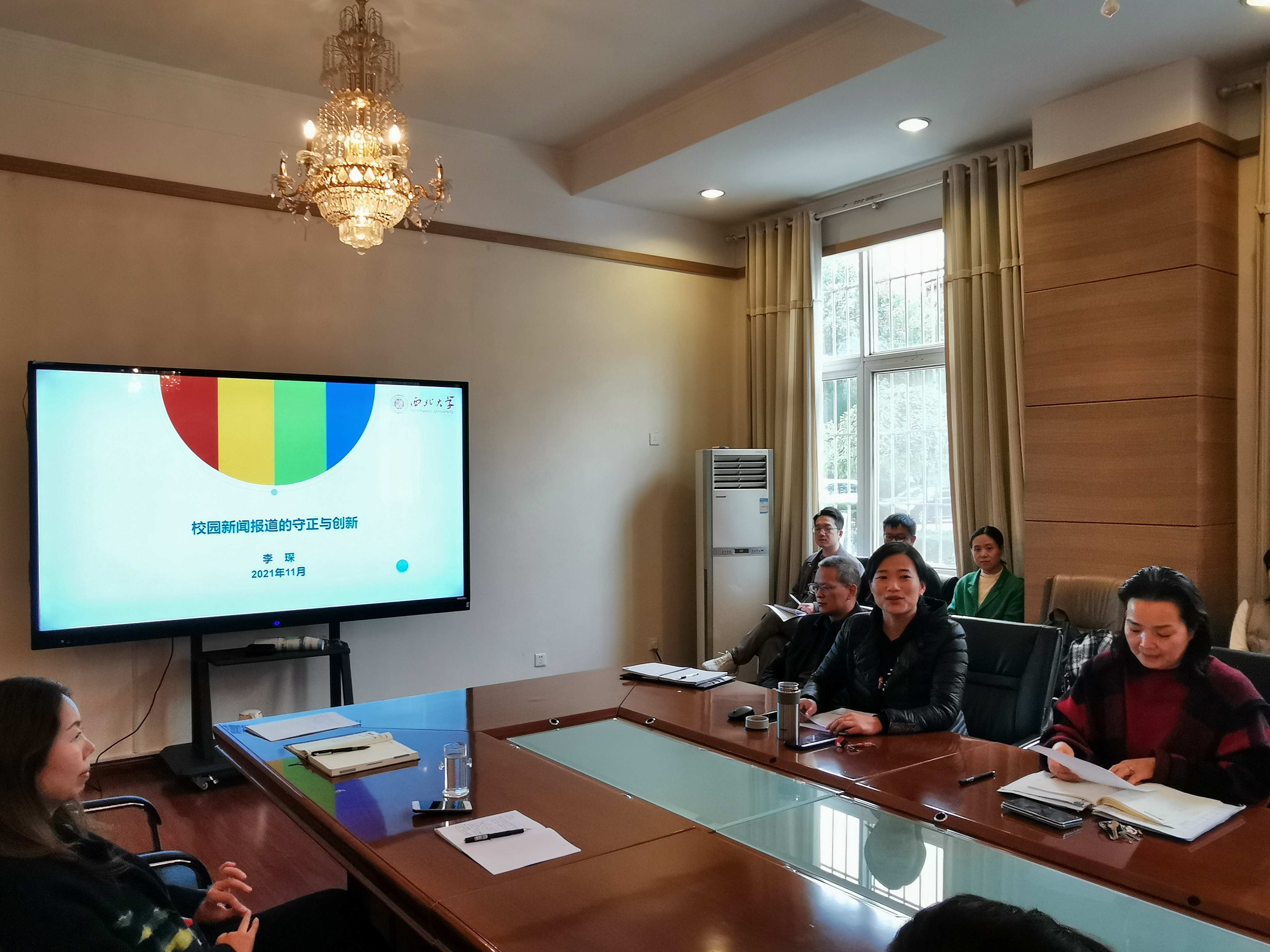 会上,国际部(院)首先邀请公司党委宣传部副部长李琛作了题为“校园新闻报道的守正与创新”的讲座,她从校园新闻报道原则、常用新闻稿件写作注意事项、如何做到既喜闻乐见又传播广泛三个方面,为全体教职员工讲了一堂生动形象、实践性很强的新闻报道专题培训课。