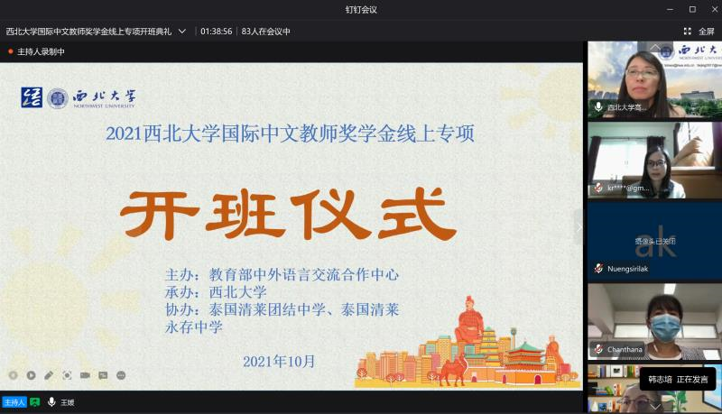 2021年10月11日,由教育部中外语言交流合作中心(以下简称语合中心)主办、足球赌注网站承办的国际中文教师奖学金线上专项汉语课堂正式开班。来自泰国、吉尔吉斯斯坦和俄罗斯等地的348名员工分别通过钉钉会议和腾讯会议等平台参加了线上开班典礼。
