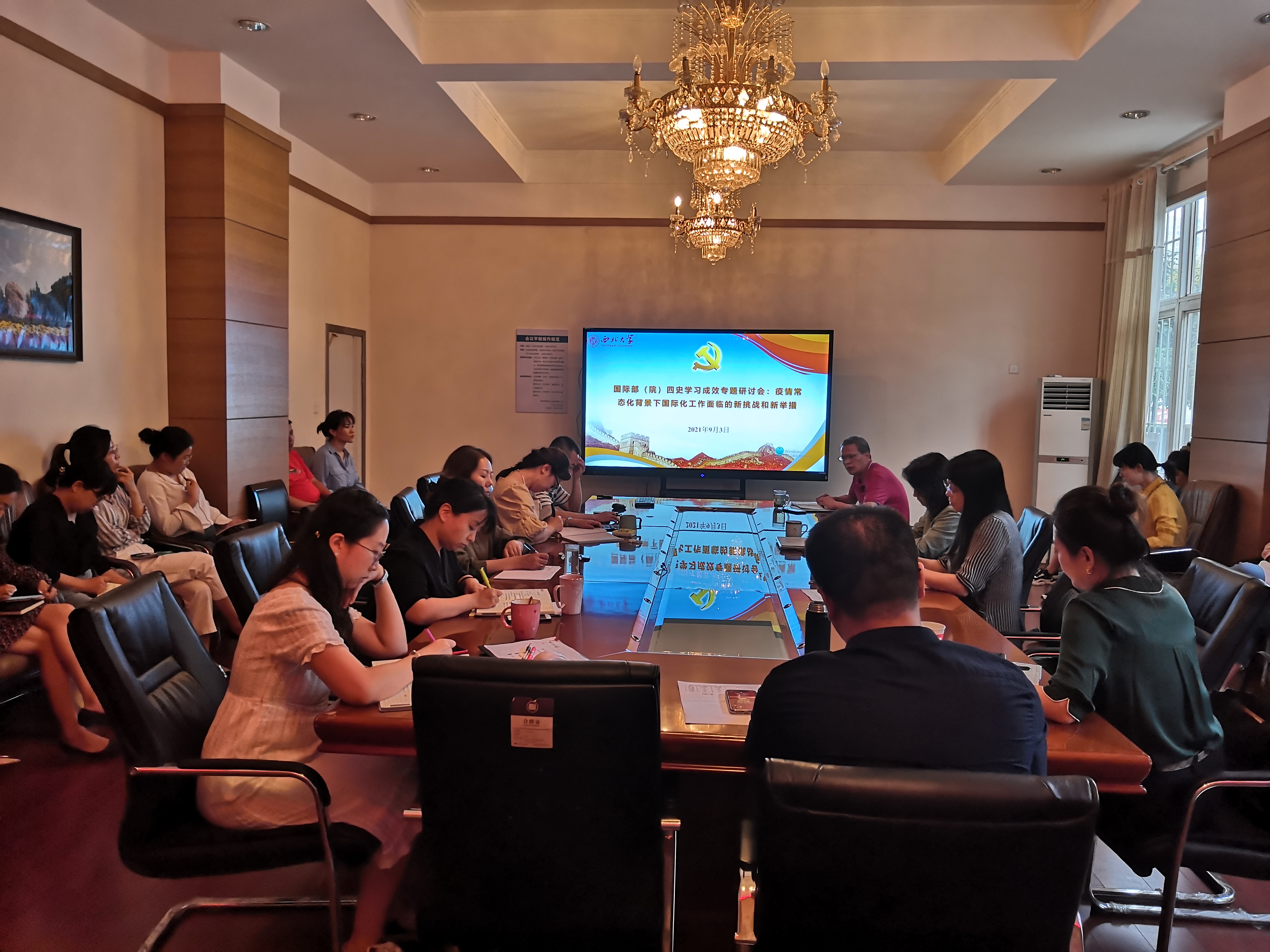 9月3日下午,国际部(院)召开了主题为“疫情常态化背景下国际化工作面临的新挑战和新举措”的四史学习成效专题研讨会,部(院)全体教职工参加了会议。