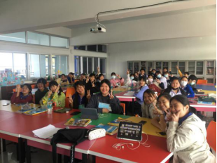 泰国清莱团结中学的同学在教室集体参加开营仪式、观看视频文化课