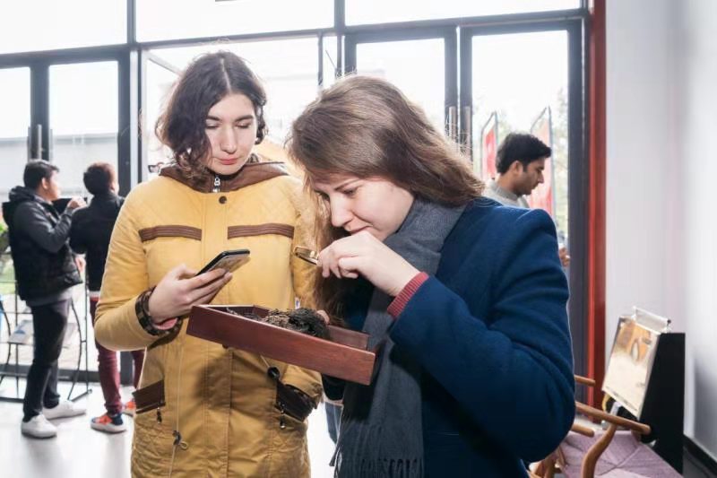 10月26日,国际员工们参观了泾河茯茶有限公司和陕西北极宫茶业有限公司。通过对当地优秀茶企研发中心实验室和现代化制茶车间的观摩以及现场交流讨论,了解了当代陕西茯茶市场的多元化发展,以及传统茯茶加工工艺向“工业化”、“工程化”、“4.0时代”的质的转变,并亲身体验了茯茶制作、冲泡工艺,近距离感受茯茶文化的独特魅力。