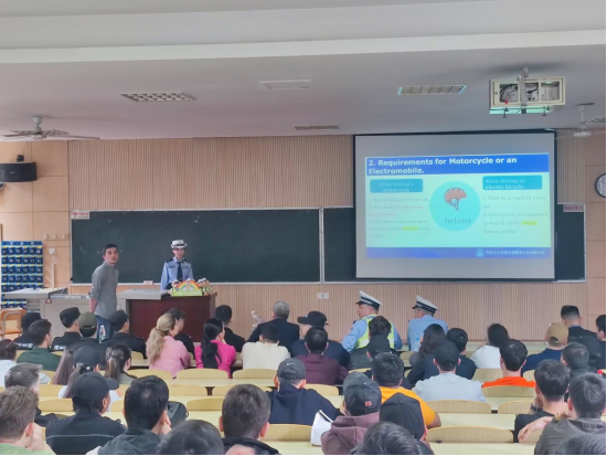 2024年4月16日中午,在校保卫处的支持下,公司成功举办国际员工交通安全专题讲座活动,交警支队碑林大队警官担任主讲。