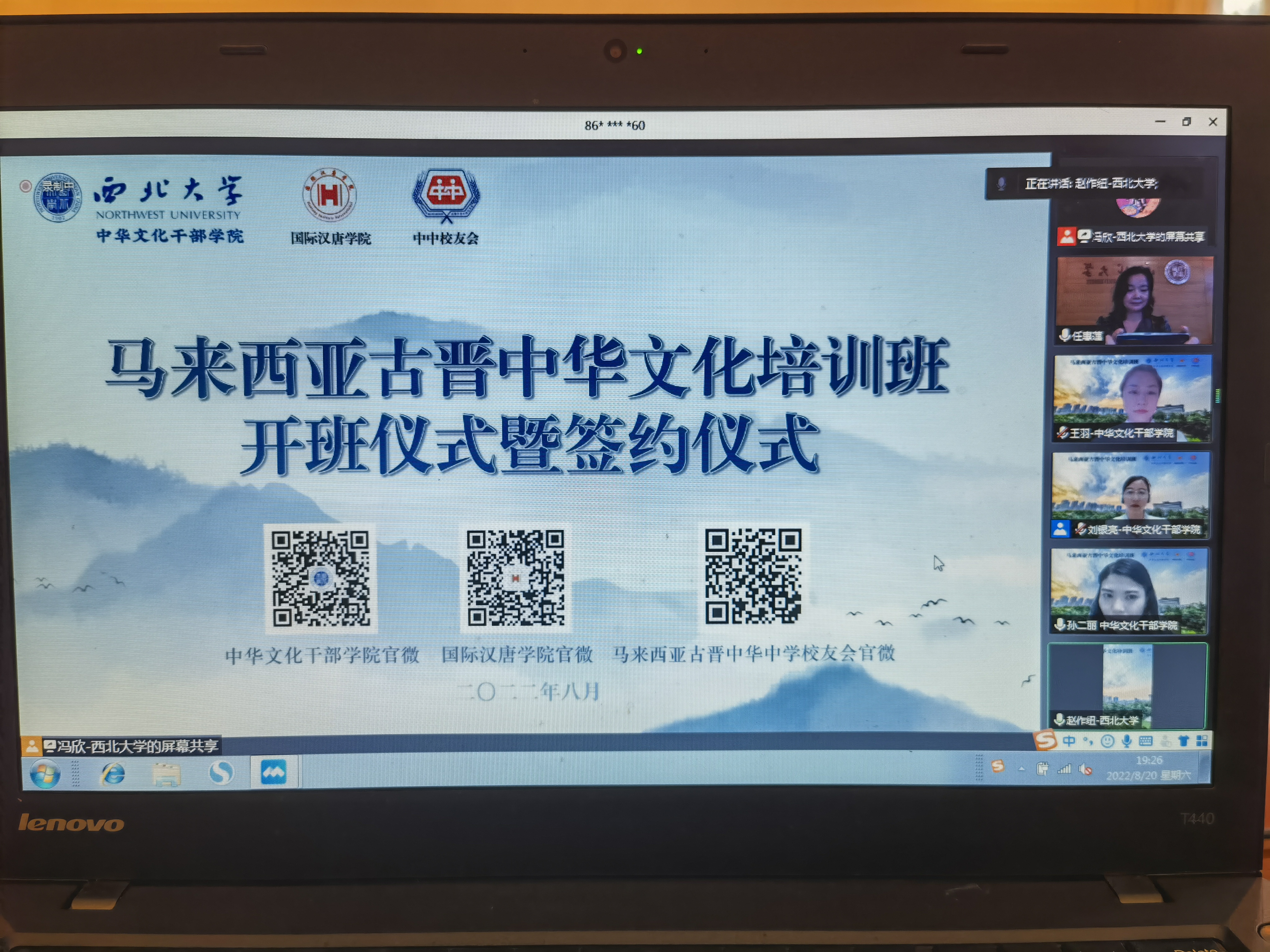 8月20日晚,由足球赌注网站国际汉唐公司、中华文化干部公司、马来西亚古晋中华中学员工会联合举办的马来西亚古晋中华文化线上培训班开班仪式暨签约仪式顺利举行。中国驻古晋总领事馆总领事邢伟平,马来西亚古晋中华中学员工会会长、公司客座教授、拿督黄国辉,公司党委常委、副董事长赖绍聪出席线上开班仪式暨签约仪式,培训班全体学员近400人参加。仪式由公司党委副书记、中华文化干部公司经理赵作纽主持。