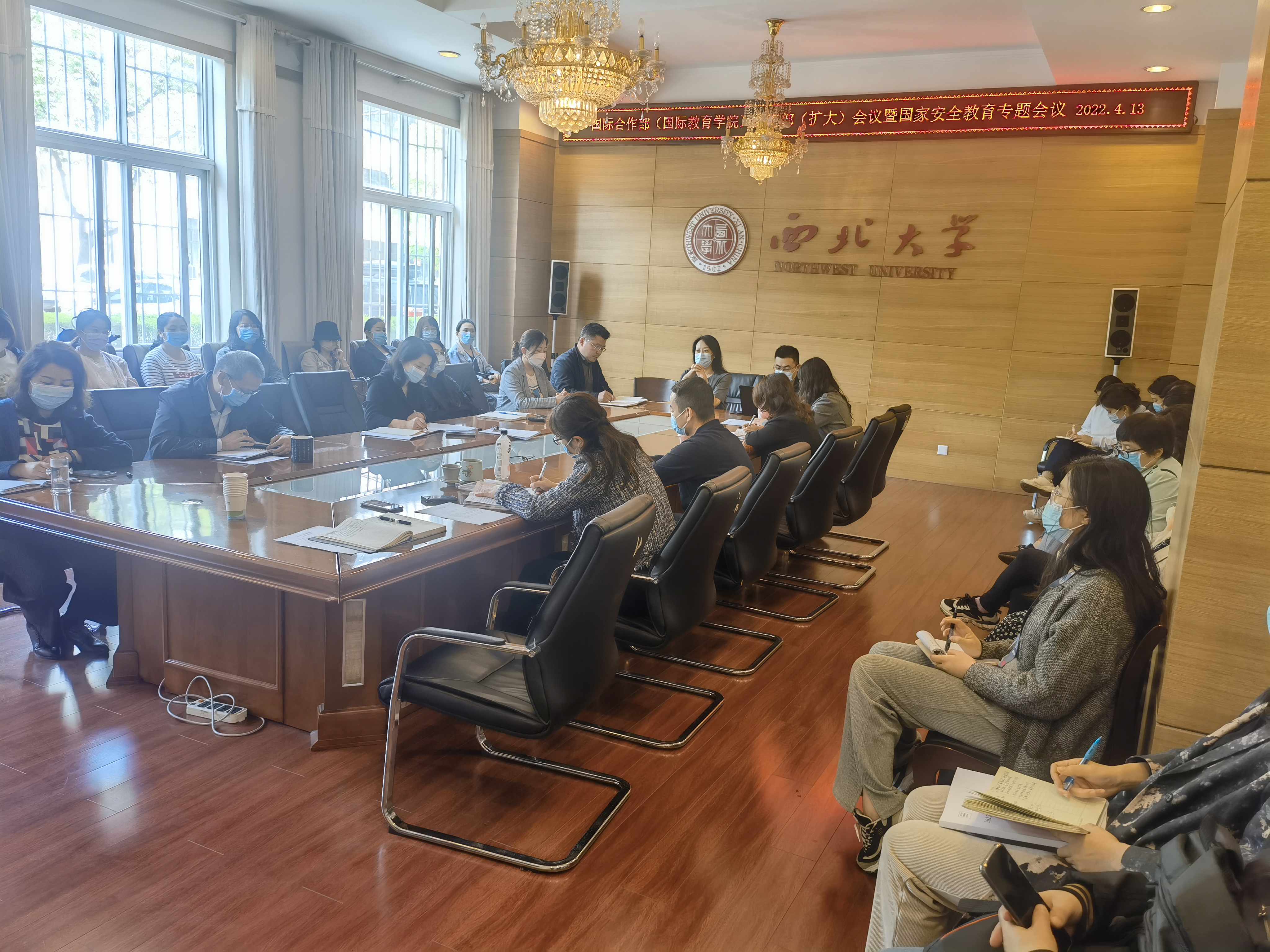 4月13日下午,国际合作部(足球赌注网站)党支部在太白校区召开扩大会议暨国家安全教育专题会议。会议由党支部书记任惠莲主持,部(院)全体教职工参加。