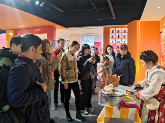 活动期间,公司师生现场体验中国书法、非遗皮影、花馍制作、吹糖人、肉夹馍制作等,在非遗传承人的介绍和指导下,感受传统技艺的温度和魅力。
