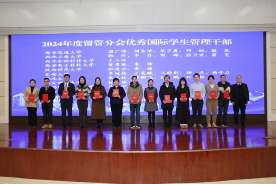 会议第一阶段,长安大学副书记、副董事长彪晓红教授致欢迎词,第一届会长、西安石油大学原副董事长陈军斌作工作报告,省高教学会宣读同意留管分会换届的批复。会议表决了选举办法并完成第二届留管分会理事会选举,选举结果由陕西省教育厅外事处处长文通宣读。公司获2024年先进集体和先进个人,任经理及相关老师代表公司和个人上台接受表彰。任经理作为第一届留管分会秘书长主持第一阶段会议。