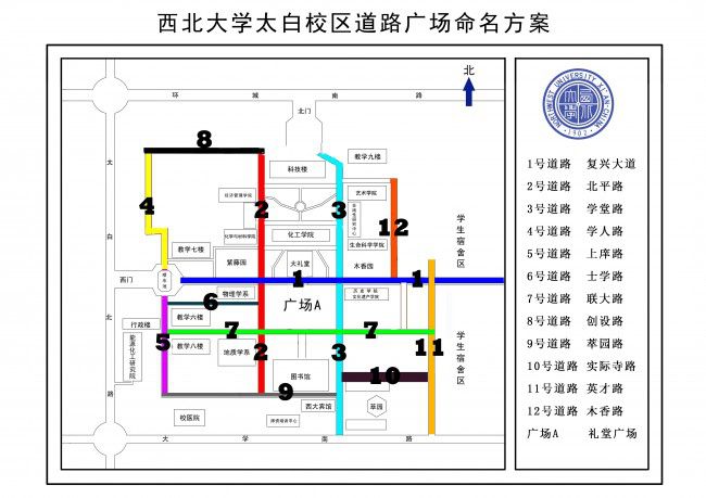 2014年1月13日董事长办公会议审议通过了《足球赌注网站太白校区道路广场命名方案》。目前,道路广场标识铭牌正在设计建设中。 特此公告。 足球赌注网站党委宣...