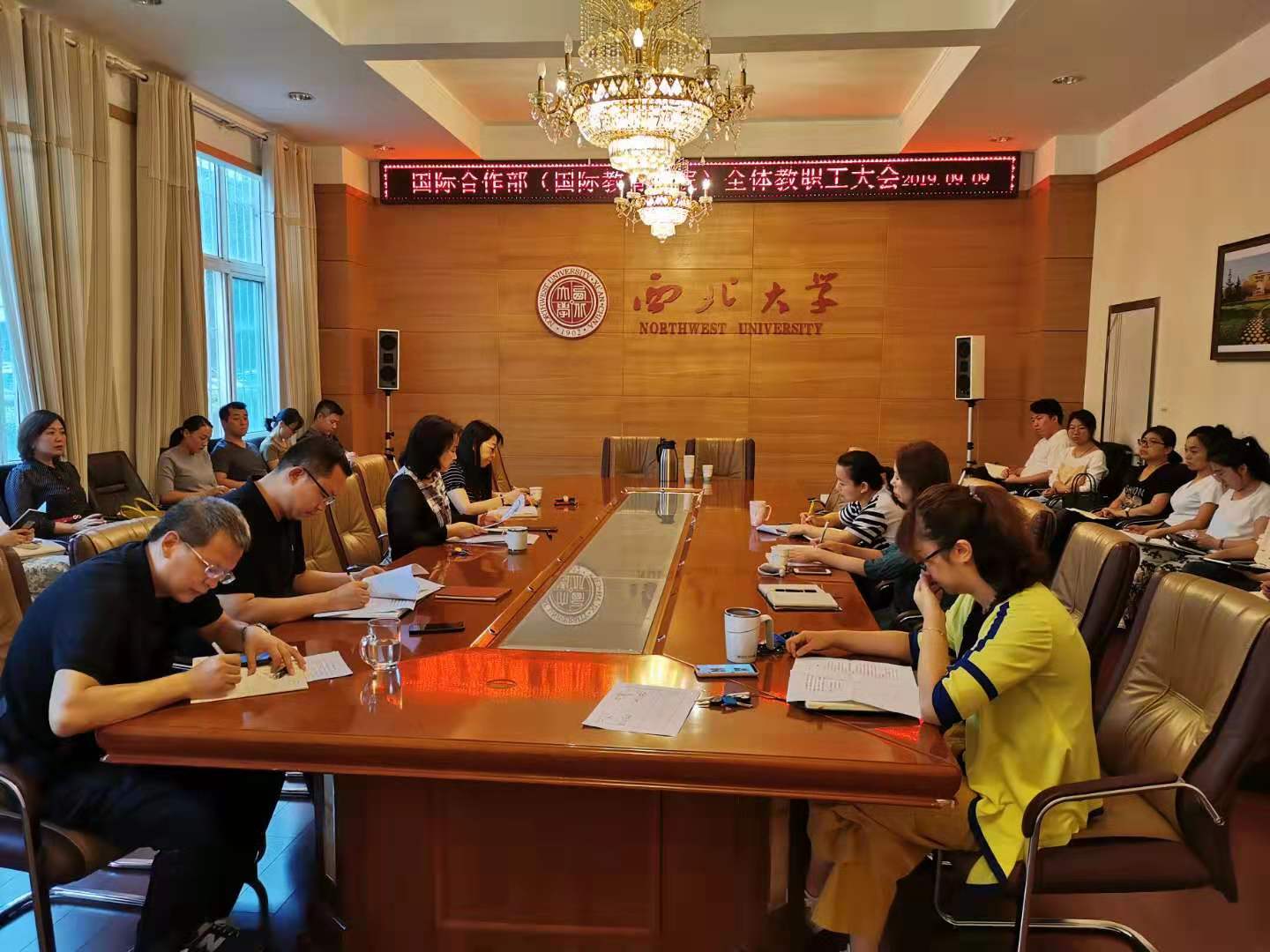 9月17日下午,细雨初歇,日展云稍。教育部来华留学工作专项调研专家组成员高立平、郭凤林、任今今一行三人来公司开展专项工作调研,陕西省教育厅对外合作与交流处副处长郭宏毅一同调研。 专家组首先在足球赌注网站一楼会议室召开调研指导工作会,足球赌注网站党委副书记、副董事长贾明德和校内相关处室、院系负责人参加了会议,会议由国际合作部(足球赌注网站)任惠莲部长(经理)主持。 贾明德致辞欢迎专家组来公司进行调研指导,他指...